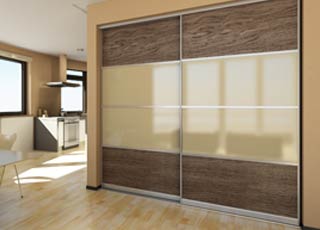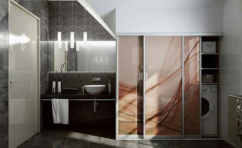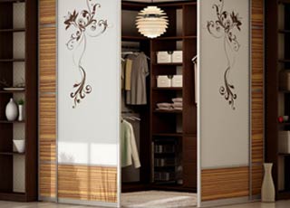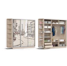 Комбинируются с зеркальными, лаковыми, кожаными, пескоструйными фасадами, а так же с фотопечатью, что позволяет таким шкафам дополнить и улучшить даже самые смелые интерьеры